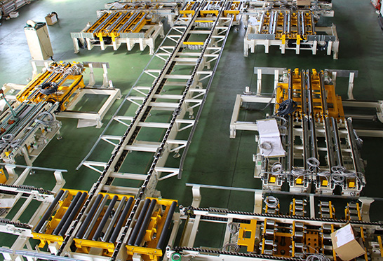 - 溶接チームより製品を引き継ぎコンベヤへと組立します。